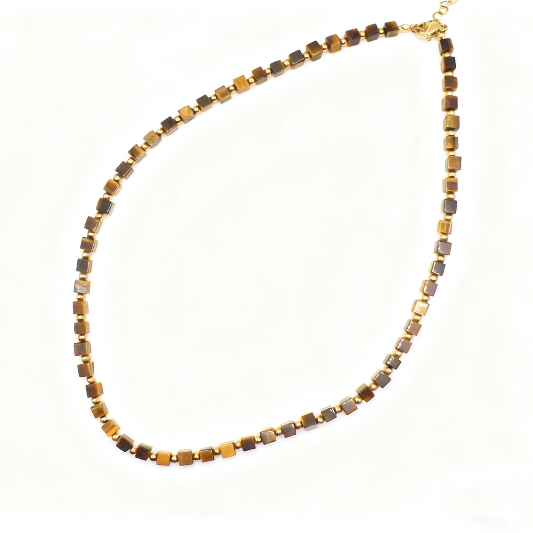Collier artisanal ras-du-cou en perles d'eau douce, jade et agate rouge